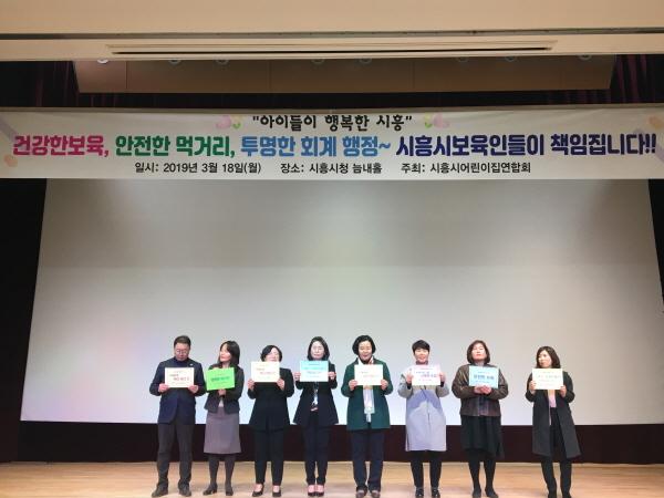 교육종료 후 시흥시어린이집연합회는 “아이들이 행복한 시흥을 위한‘건강한 보육 안전한 먹거리 회계프로그램 선제적 도입 시흥시 보육인들이 책임집니다” 라는 피켓을 들고 시흥시 보육인으로서의 결의를 다지기도 했다.