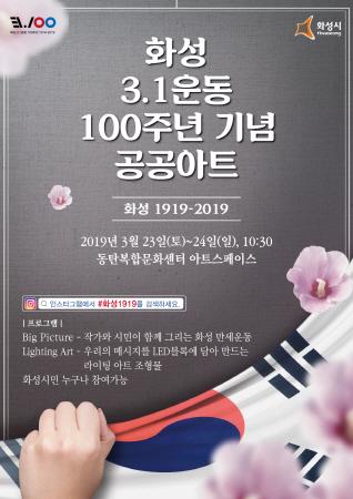 화성시가 3.1운동 100주년을 맞아 시민들과 함께 공공아트 프로젝트 ‘화성 1919-2019’를 선보인다.