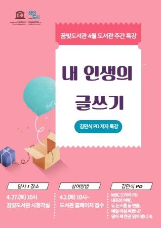 부천시립꿈빛도서관은 4월 도서관 주간을 맞이해 오는 4월 27일 ‘매일 아침 읽어 봤니?’의 저자 김민식 PD를 초청해 특강을 개최한다.