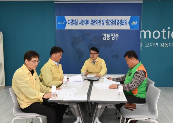 양주시는 지난 19일 김대순 양주부시장 주재로 시, 경찰서, 소방서, 군부대, 민간단체, 자율방재단 등 10여개 관계기관이 참석한 가운데 ‘2019년 여름철 자연재난 대비 유관기관 및 민간단체 영상회의’를 개최했다.