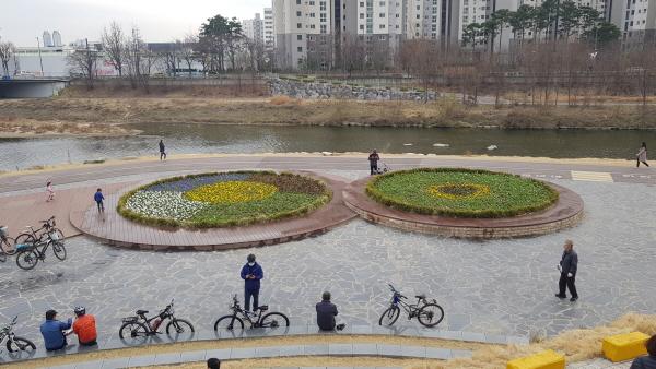 안양천변 쌍개울 문화광장이 봄옷으로 갈아입었다.