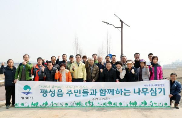 평택시는 지난 19일 정장선 평택시장, 권영화 평택시의회 의장, 주민 등 100여 명이 참석한 가운데 팽성읍 석봉리에서 ‘주민들과 함께하는 나무심기 행사’를 개최했다.