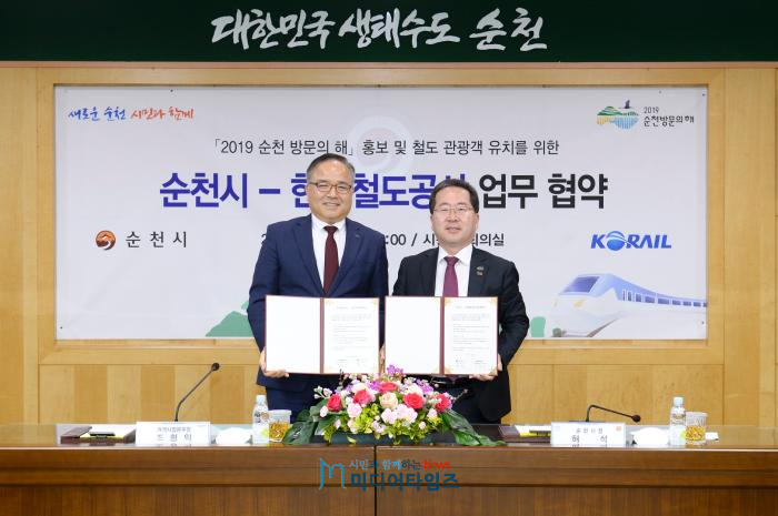 순천시(시장 허석)는 ‘2019 순천 방문의 해’를 맞아 순천시 홍보와 철도관광객 유치를 위해 지난 19일 한국철도공사와 업무협약을 체결했다.