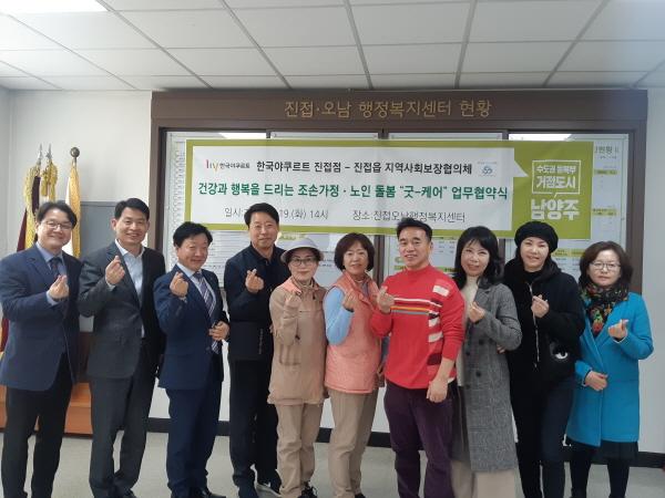 진접오남행정복지센터, 진접읍 지역사회보장협의체, 북부희망케어센터, 한국야쿠르트 진접지점은 지난 19일 조손가정·노인 돌봄 사업의 진행을 위해 업무 협약식을 가졌다.