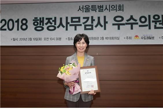 서울시의회 보건복지위원회 이정인 의원은 지난 19일 의원회관 제1대회의실에서 ‘2018 서울시 행정사무감사 우수의원’에 선정되어 수상했다.