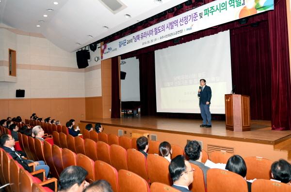 파주시는 20일 오후 3시 시민회관 소공연장에서 서울과학기술대학교 김시곤 교수를 초청해 ‘남북 유라시아 철도의 시발역 선정기준 및 파주시의 역할’이라는 주제로 3월 수요포럼을 개최했다.