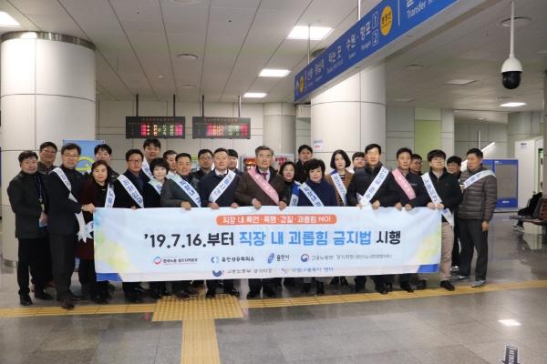용인시노사민정협의회는 지난 19일 기흥역 지하 1층에서 고용노동부 경기지청과 함께 올바른 근로문화 조성을 위한 캠페인을 했다고 밝혔다.