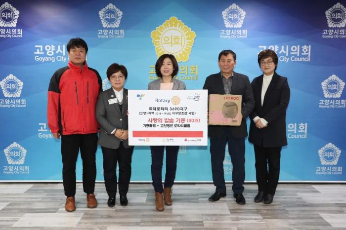 이윤승 고양시의회 의장은 지난 1일 의장실에서 열린 고양명문 로타리클럽 ‘사랑의 밥솥 전달식’에 참석해 따뜻한 나눔을 함께 했다.