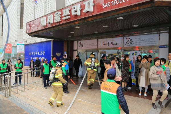 훈련에서는 자체 훈련 방송을 통해 새서울프라자 직원과 시민들이 유도요원의 안내에 따라 대피장소로 안전하게 대피할 수 있도록 하고, 자체 소화 반원들과 출동한 과천119안전센터가 합동으로 화재를 진압하는 훈련을 실시했다.