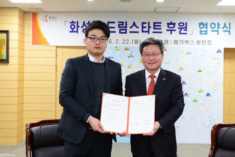 22일 화성시청 접견실에서 채인석 화성시장과 정성균 메가박스 동탄점장은 매월 50명씩 연 600명의 화성시 드림스타트 아동과 가족이 무료로 영화를 관람 할 수 있는 업무협약을 맺었다.