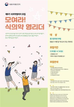 중·고등학생 대상 제9기‘식의약영리더’50팀 모집