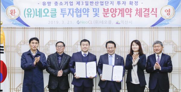 익산시는 21일 시청에서 정헌율 익산시장, 윤영숙 익산시의회 부의장, 네오클 한뿌리 대표가 참석한 가운데 익산 제3일반산업단지 투자를 위한 투자협약 및 분양계약을 체결했다.