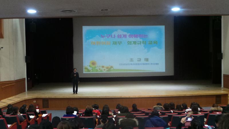 이날 교육에는 관내 어린이집 원장 및 직원 250여명이 참석하였으며 전남육아종합지원센터 회계담당으로 근무하고 있는 조규태강사의 강의로 진행되었다.