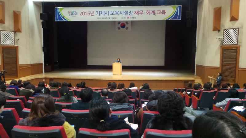 거제시(시장 권민호)는 지난 2월 19일 거제시청소년수련관 대강당에서 관내 보육시설장을 대상으로 2016년 재무·회계 교육을 실시했다.