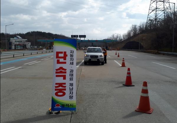 동해시는 지난 21일 동해IC에서 강원지방경찰청, 한국도로공사 등과 합동으로 자동차세 및 과태료, 통행료 체납에 대한 합동 단속을 벌였다.