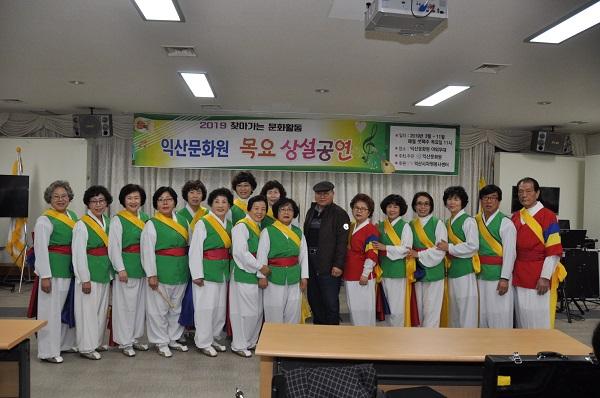 한편 2019년 찾아가는 문화활동 목요상설공연은 3월부터 시작해 11월까지 매월 셋째 주 목요일 11시에 익산문화원 야외무대에서 열린다.