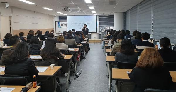 숭실대학교 강미경 교수를 초빙해 ‘마을에서 사례관리 실천하기’라는 주제로 문제해결 중심에서 대상자의 강점에 초점을 두고 가능한 모든 자원을 활용해 대상자의 역량을 실현해나가는 강점관점 중심의 교육을 실시했다.