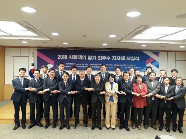 경기도가 22일 국회의원회관에서 열린 한국사회책임네트워크 주최 ‘2018년 기준 사회책임 지수 우수 지자체 평가 시상식’에서 종합 1위를 수상했다.