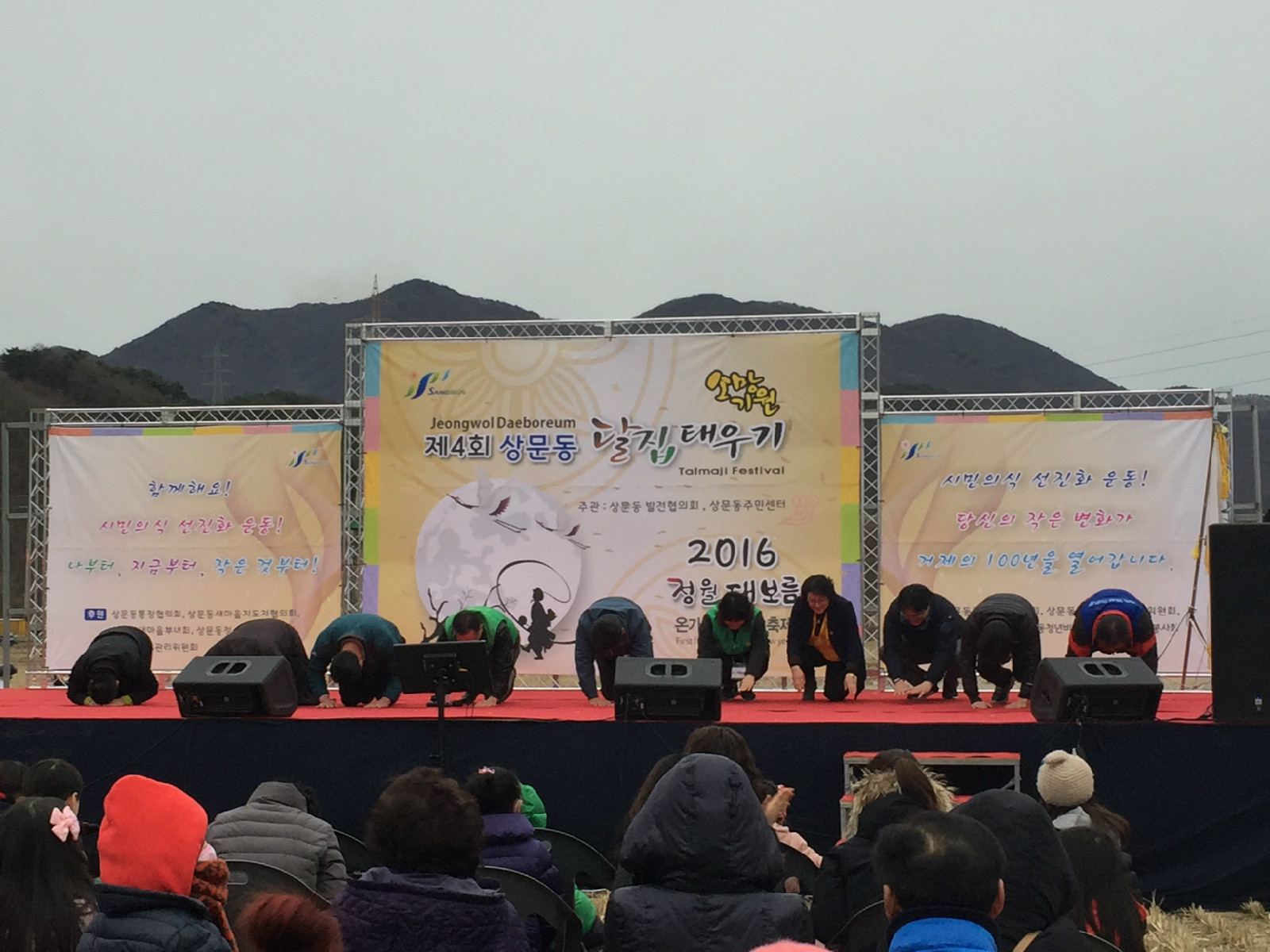 상문동주민센터 맞은편 용산공원 인근에서 열린 이 행사에는 2,500여명의 많은 주민들이 가족과 함께 참여하여 소원지 적기, 노래자랑과 축하공연 등 다양한 행사를 즐기고 무료로 제공된 떡국과 파전을 먹으면서 훈훈한 정을 함께 나누었다.
