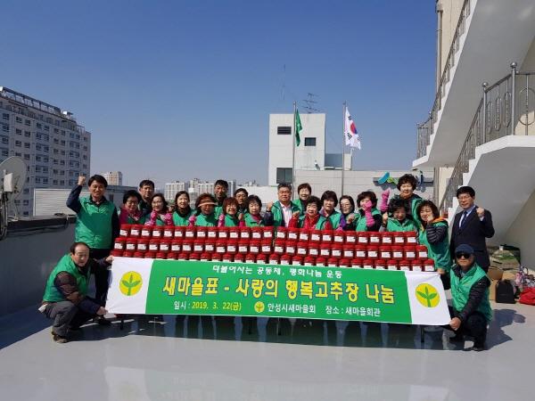 안성시새마을회의 고추장 담그기 행사는 매년 진행되고 있으며 이 외에도 밑반찬 만들어주기, 홀몸노인 돌봄 등 봉사활동에 앞장서며 지역사회의 모범이 되고 있다.