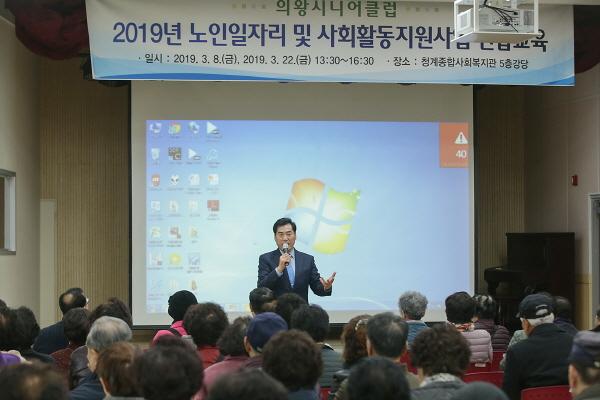 의왕시는 22일 청계종합사회복지관 강당에서 노인일자리 사업 참여자 교육을 실시했다. 이날 교육에는 시장형 참여자 54명과 사회서비스형 참여자 47명 등 100여명의 어르신이 참여했다.