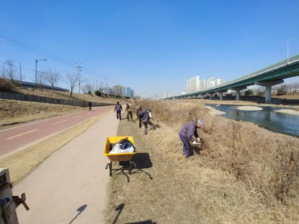 이번 제초작업은 새봄을 맞아 안양천에 우거졌던 잡초와 유해식물인 돼지풀, 가시박 등을 일제히 제거해 보행자 및 자전거 이용자들에게 탁 트인 시야와 깔끔한 하천환경을 제공하기 위해 실시했다.