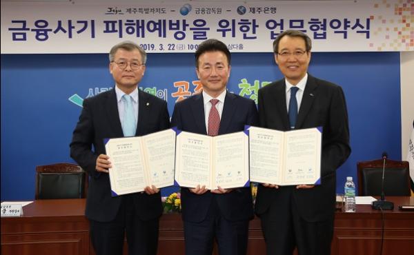 제주도·금융감독원·제주은행, 금융사기 피해예방 업무협약 체결