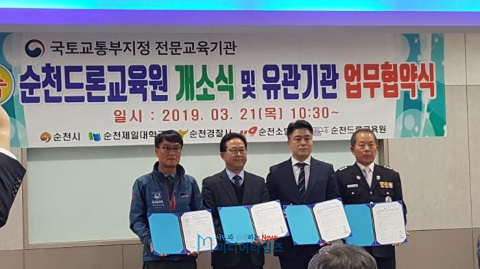2018년부터 순천시에서는 드론의 중요성에 대하여 공감하고 있는 제일대학교와 함께 전문교육기관 지정을 위한 업무협약을 맺고, 순천는 맑은물관리센터 운동장을 이․착륙 교육시설로 유상 사용허가 하고, 제일대학교는 학교 내 이론 강의실, 사무실, 휴게실을 제공하기로 해 이번 ‘순천드론교육원’을 개원하는데 지원을 아끼지 않았다.