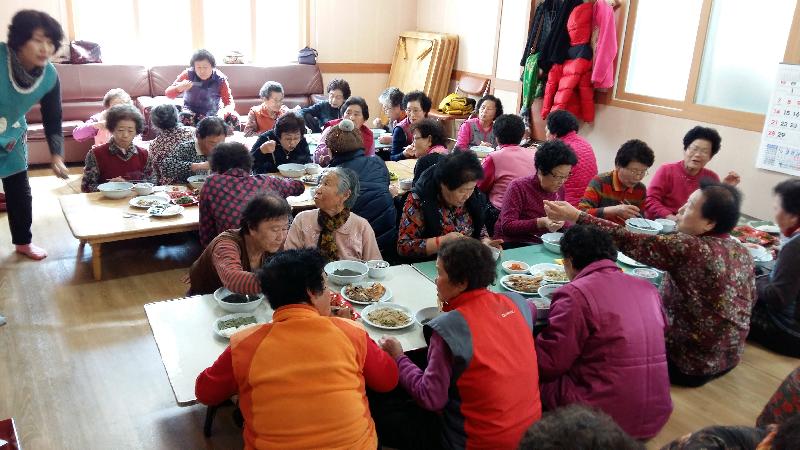 이날 중식 봉사활동에 참여한 봉사자들은 아침 일찍부터 경로당에 나와 손수 반찬을 만들고, 국을 끓이고, 생선을 굽는 등 맛있는 음식을 대접하기 위해 정성을 다하였으며, 또한 후식으로 떡과 과일을 대접했다.
