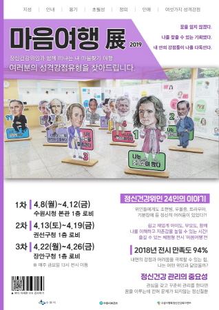 수원시행복정신건강복지센터가 3월부터 오는 4월까지 정신건강 위인 24인의 이야기를 만나볼 수 있는 ‘2019 정신건강위인 마음여행展’을 연다.
