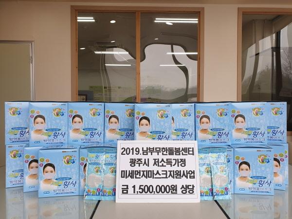 광주시 남부무한돌봄행복나눔센터는 25일 취약계층의 건강관리 및 예방에 도움을 주기위해 미세먼지 차단 마스크 1천800개를 배부한다고 밝혔다.