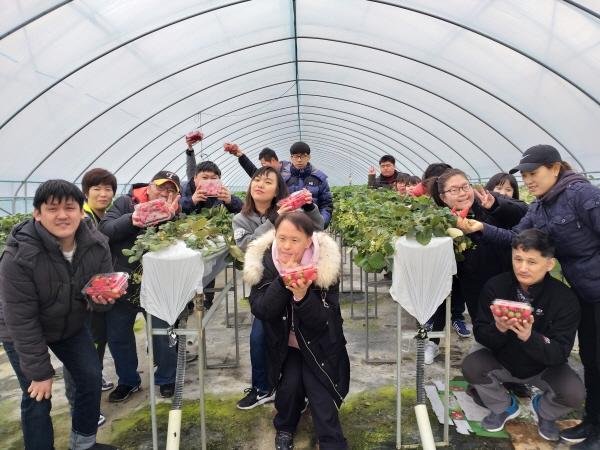 의정부시시설관리공단 사랑나눔봉사단에서는 지난 23일 장애인보호작업장 솔빛터 친구들과 양주시 조안농원에서 딸기 수확 체험으로 봄 향기 가득한 사랑나눔을 실천했다.