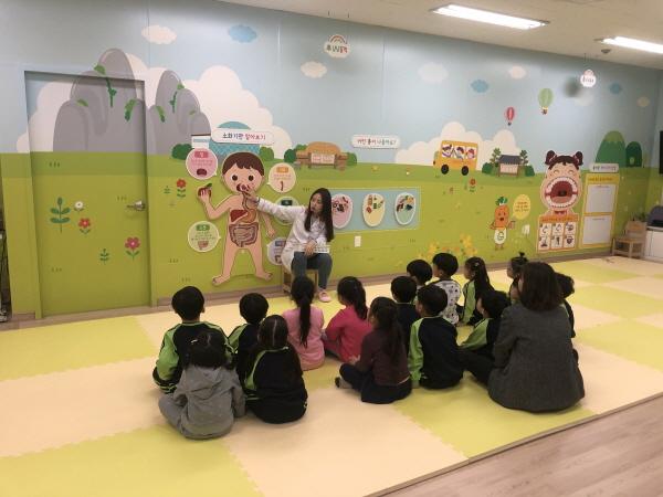 또한, 아이들의 흥미를 유발하고 교육 효과를 높이기 위해 소화기관 터널, 식품 징검다리 건너기, 손 씻기 컬링 등 다양한 활동을 함께 진행한다.