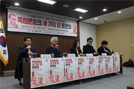 이 행사는 ‘독립운동의 세 가지 길’을 주제로 주대환 사회민주주의연대 대표의 인사말로 시작해 1부에서 류석춘 연세대학교 사회학 교수가 발제를 맡았고 김용삼 前월간조선 편집장, 주익종 낙성대경제연구소 연구위원, 전창렬 한국대학생포럼 학술국장이 토론했다.
