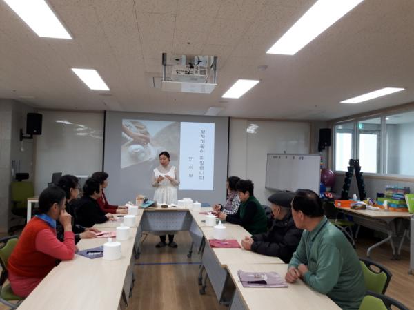 당일, 가족들만의 자조모임 시간도 따로 마련되어 ‘치매바로알기’, ‘돌보는 지혜’에 대한 치매안심센터 직원의 설명을 통해 돌봄에 대한 이해를 높이고 서로의 고충을 털어 놓는 등 잠시나마 휴식의 시간을 가졌다.