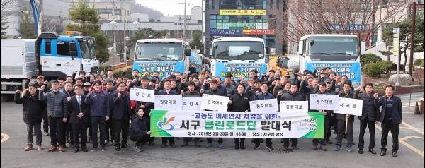 ‘서구 클린로드단’은 구 청소차량 15대, 시 청소차량 8대, 사업장과 공사현장 살수차 38대, 총 61대로 구성됐으며, 미세먼지 예비 저감조치 및 비상 저감조치 발령 시 관내 주요도로에서, 하루 두 차례 책임 관리구간 도로를 일제히 살수 청소해 미세먼지를 낮춰나간다.