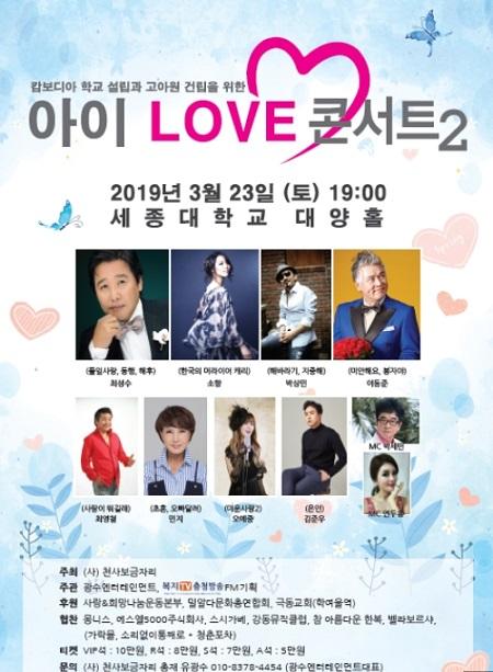 캄보디아 학교와 고아원 건립을 위한 사랑의 자선공연 '아이 러브 콘서트2'가 지난 23일 오후 7시 세종대 대양홀에서 성황리에 열렸다.