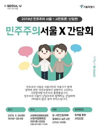 시민 간담회에는 ‘보건소에서 난임 주사제 투여’에 대한 박원순 서울시장 및 담당 부서의 답변과 패널발표, 질의응답 등이 예정되어 있다.