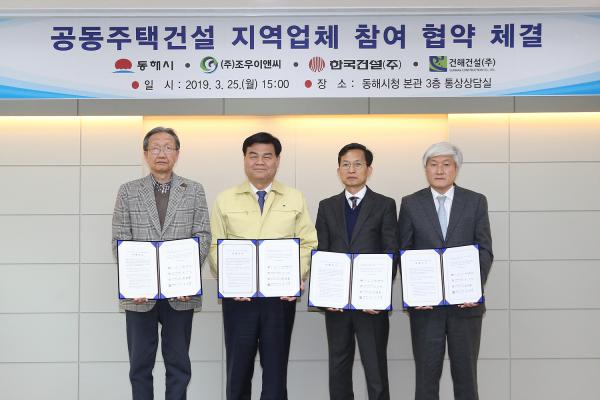 동해시는 지난 25일 시청에서 동해 한국 아델리움 공동주택 신축공사와 관련해 ‘공동주택건설 현장 지역업체 참여’를 위한 양해각서를 체결했다.