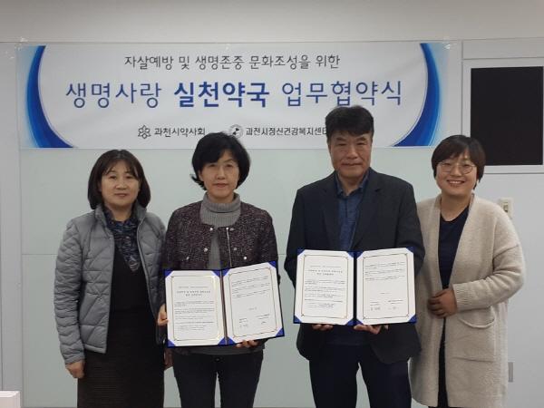 과천시보건소 정신건강복지센터는 지난 25일 보건소 2층 보건교육실에서 과천시약사회와 생명존중과 자살예방을 위한 ‘생명사랑 실천약국’ 협약을 체결했다.
