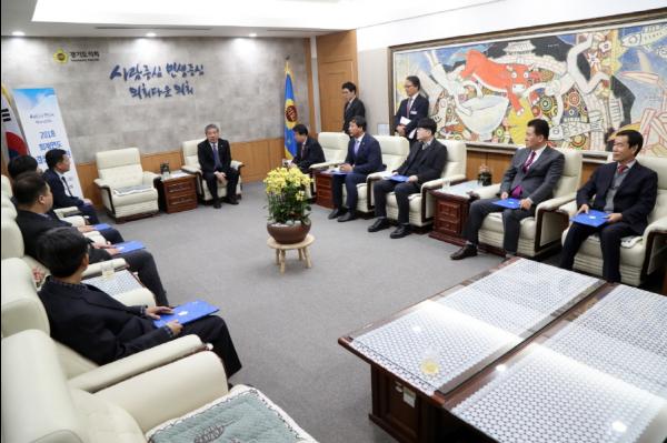 송한준 경기도의회 의장이 26일 의장 접견실에서 ‘2018 회계연도 결산검사위원’ 10명을 위촉하고 위촉장을 수여했다.
