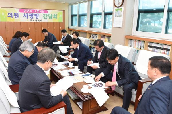 강화군의회는 지난 25일 의회 의원사무실에서 강화고등학교 이병하 교장 등 학교 관계자들과 사랑방 간담회를 개최했다.