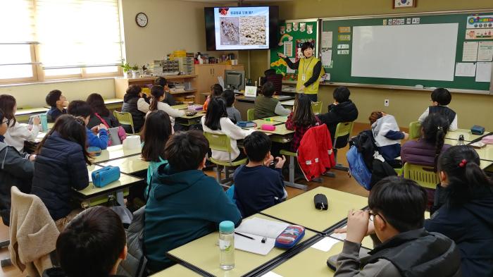 오늘 첫 번째로 진행된 생태학 강의는 작년에 동탄2신도시에서 개교한 한율 초등학교에서 이루어졌다. 참여한 학생들은 화성호에 살고 있는 다양한 갯벌생물들을 통해 갯벌을 보존해야 하는 이유를 배우고, 기억에 남는 갯벌생물을 골라 액자에 꾸며보는 체험 시간을 가졌다.