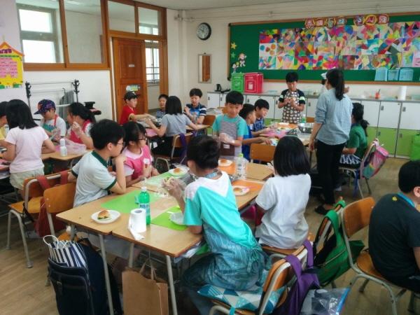 올해 수업은 ‘오늘 뭐 먹을까’, ‘얼쑤~ 좋다 우리농산물’ 등 2개 소주제로 진행된다. 식생활 이론수업·요리실습으로 이뤄진다. 한 강의당 이론수업 20분, 요리실습 60분 등 총 80분으로 진행된다. 지역 먹거리를 이용한 채소 피클과 오곡 강정 등을 직접 만들어볼 수 있다.