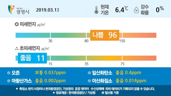 라이브광명으로 기온, 강수확률, 대기오염물질 6종에 대한 정보 실시간 제공