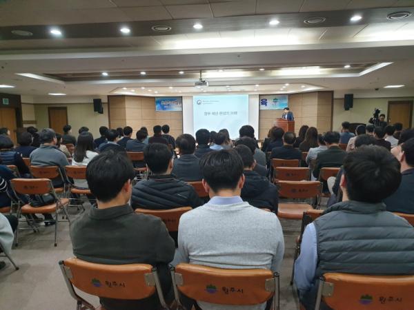 원주시가 정부 예산 확보를 위한 공직자 특별교육을 지난 26일 원주시청 지하 1층 다목적홀에서 실시했다.