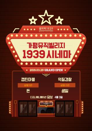 가평군은 군 최초로 멀티플렉스 영화관 ‘1939 시네마’가 오는 29일 오픈한다고 밝혔다.