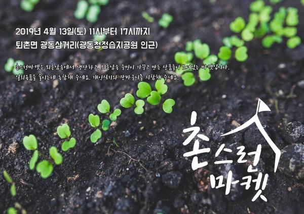 광주시 퇴촌면 농촌중심지활성화 추진위원회는 오는 4월 13일 2019년도 상반기 촌스런마켓을 개장한다고 27일 밝혔다.