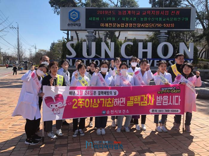 결핵은 제3군 만성호흡기 법정감염병으로 매년 약 3만 명의 환자가 발생하고 약 2천 2백 명이 사망하는데 순천시에서는 결핵예방의 날을 맞아 시민에게 질병의 심각성과 예방의 중요성을 알리기 위해 캠페인을 실시했다.