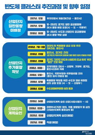 이날 국토교통부 수도권정비위원회는 최종 심의를 거쳐 반도체 클러스터 조성을 위한 용인시의 산업단지 추가물량을 승인했다. 이는 문재인 정부의 첫 수도권 규제완화사례로 클러스터 조성이 국가적으로 꼭 필요하다는 판단에 따른 것이다.